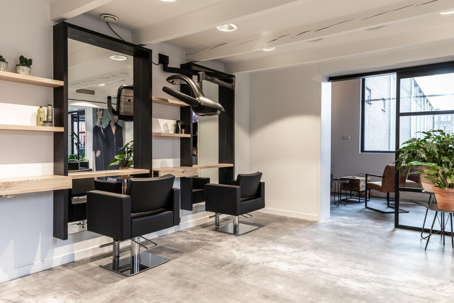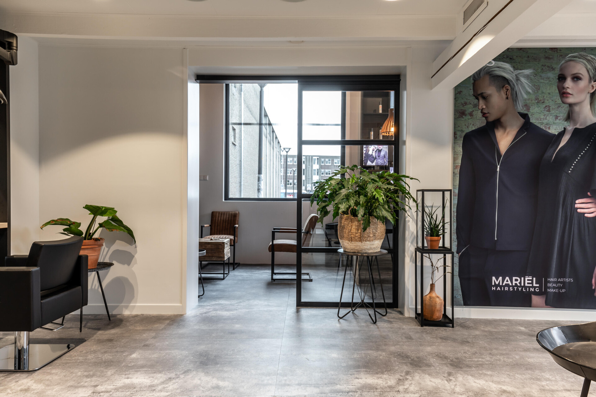 Behalve vakmanschap speelt ontspanning in een prettige sfeer en omgeving een grote rol bij Mariël Hairstyling. De Concrete tegels uit de Stone serie geven een stoere en rustige basis aan het interieur. Hierdoor komt de rest van het interieur prachtig tot zijn recht.