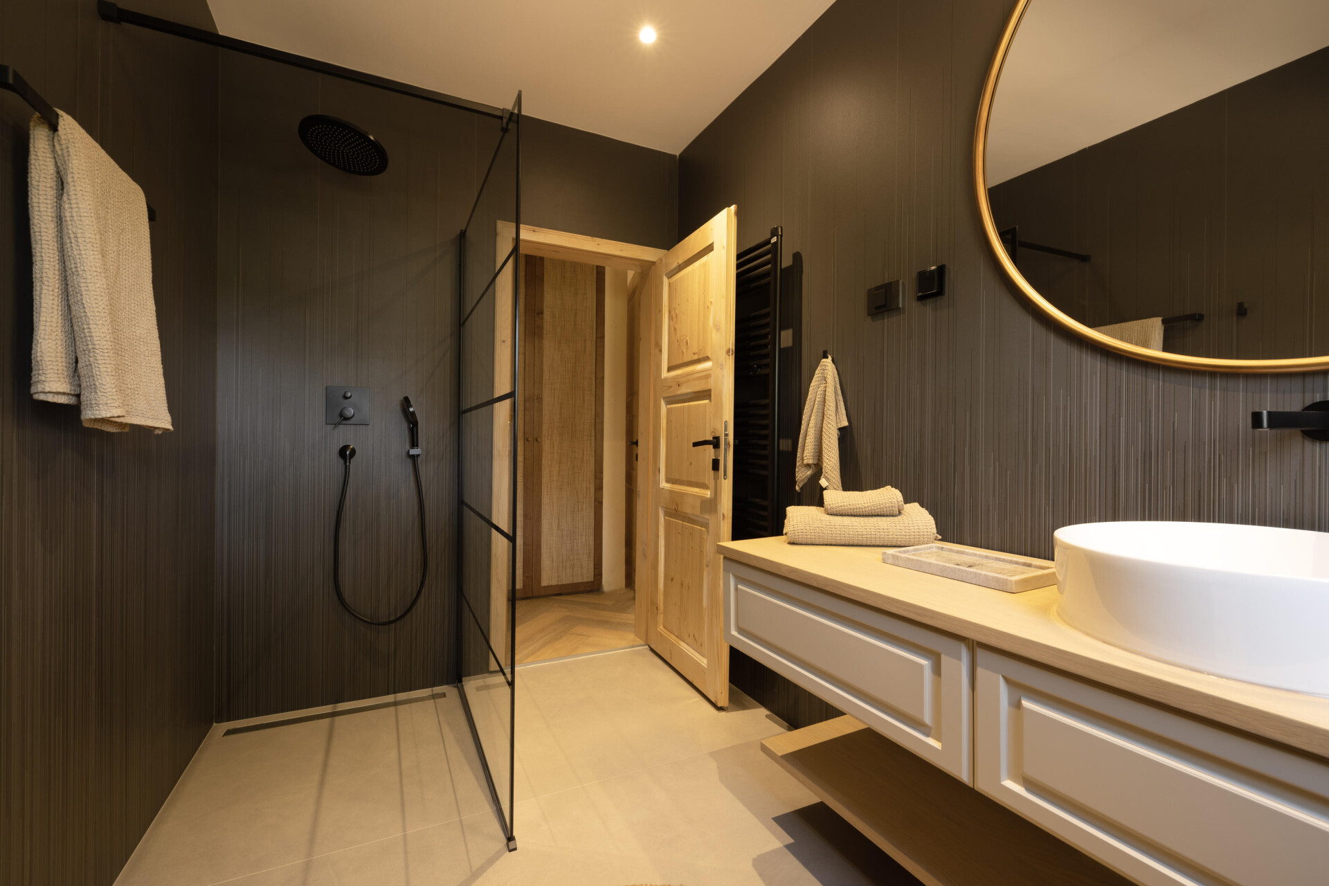 De eigenaren hebben gekozen voor de Premium 7004, waarbij de kleurschakeringen en zichtbare structuur de ruimte een eigentijdse uitstraling met een moderne twist geven.