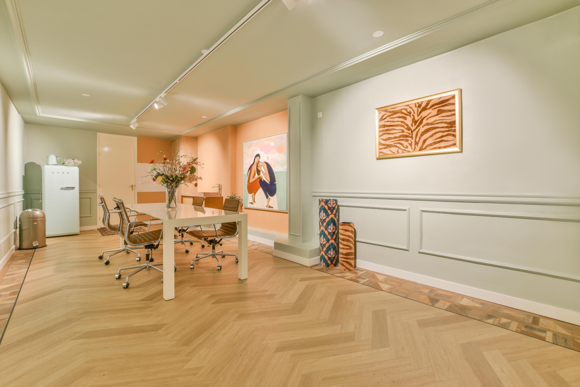De Weense punt is een klassieke en elegante versie van de Hongaarse punt. Door de manier van het leggen ontstaat er een dynamisch effect en diepte. De kleur en structuur van de planken zorgen voor een verfijnde uitstraling. De Weense punt is beschikbaar in vier kleuren, 6541, 6542, 6543 en 6544.